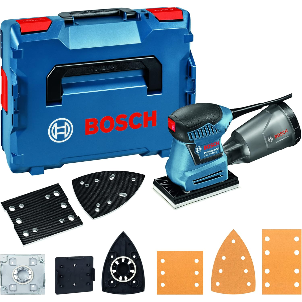Bosch GSS 160 Professional Multi is a compact and ergonomic orbital sander from Bosch for sanding corners, edges and small surfaces. Equipped with replaceable sanding discs, a microfiltration system to minimize dust and compatible with Bosch Click & Clean. Suitable for wood, varnish, filler, mineral and acrylic surfaces.Benefits and warranty