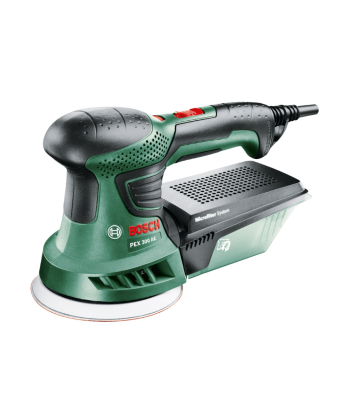 The Bosch PEX 220 A random orbit sander combines performance and comfort during work. The 220 W motor is ideal for fine sanding. Thanks to the compact, lightweight design, palm-grip handle and low vibration level, you can work comfortably with one hand in horizontal, vertical and overhead positions. It is designed for small sanding jobs on wood, plaster, putty and varnished surfaces, as well as for curved surfaces. The integrated dust collector with microfilter reduces the amount of dust, ensuring a clean work area.Benefits and warranty