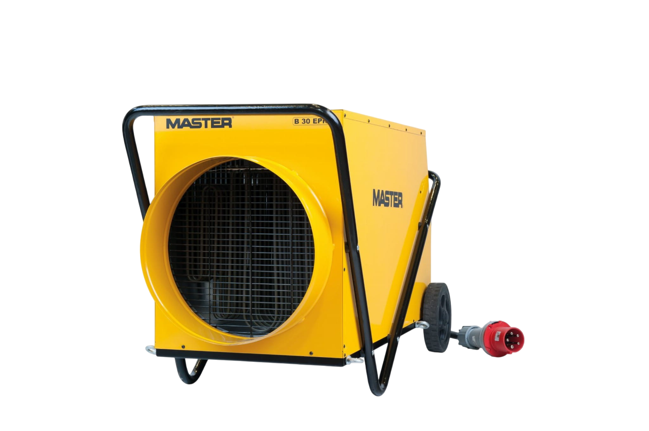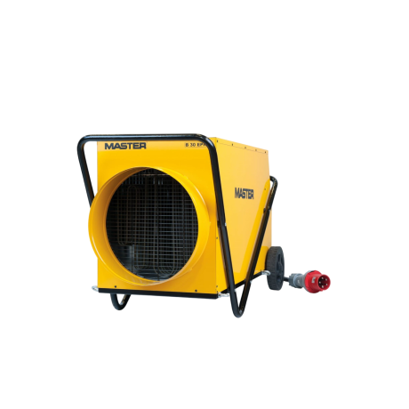 Heater Master B 30 EPR Electric heaters work well in almost any conditions. Quick installation and high efficiency of the devices ensure that the heat in the room is felt immediately after commissioning. Master electric heaters are completely portable and can be used both in offices, apartments and large industrial facilities. Specification: Power: 15/30 kW Air flow: 3,500 m3/h Rated current: 43.5 A Plug (plug) on the heater side: 63A / 5P Power supply: 400V Weight: 53 kg Dimensions: 1030x580x680 mm Warranty: 12/24 months Model description: Possibility of connecting flexible cables Large wheels for easy transportation Power cord included Transportation ears Manual reset Possibility of connecting a room thermostat They do not consume oxygen No fumes, no odor, no moisture Summer-winter switch for ventilation only Quiet operation Motor with thermal switch Overheating thermostat Ability to adjust powerBenefits and warranty