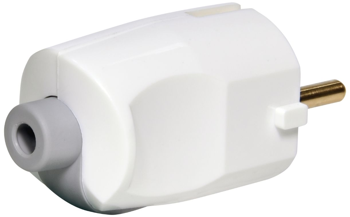 ETI Universal Plug PPW-UNI (2P+PE, angled/straight, polycarbonate, IP20, white) — versatile power connector usable in both straight and angled configurations. Durable polycarbonate housing ensures longevity and lightness. IP20 rating suitable for dry indoor environments. Perfect for household and industrial use.Benefits and warranty