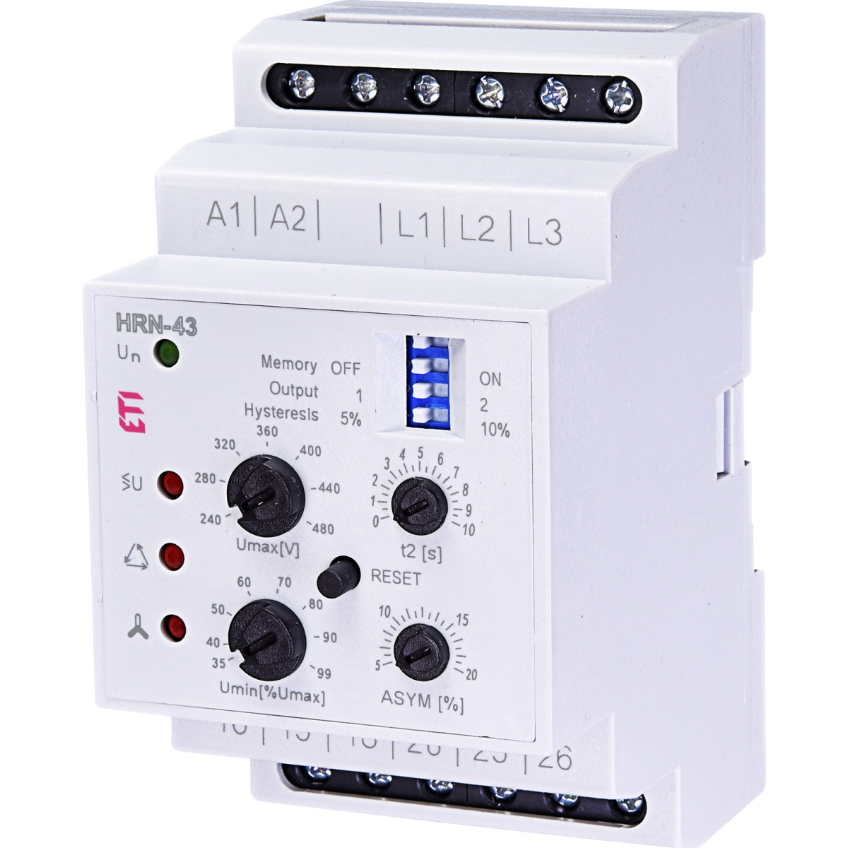 Features ETI Voltage monitoring relay HRN-43 230V (3F, 2x16A_AC1) without neutral 002471405