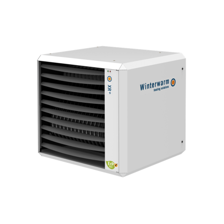 The Winterwarm XR+ heater is the successor to the standard XR heater, which has been the most popular Winterwarm heater for the past 15 years. It is unique due to its patented stainless steel heat exchanger and attractive design. The compact heaters have proven themselves as a cost-effective solution for heating almost all types of industrial and commercial buildings. The great advantage of the XR+ series is that there is no need to drain the condensate, so the heater can be positioned very flexibly and there is no need to incur additional costs for connecting the condensate drain to the sewer. Improved performance All the positive features of the XR series have been retained (delta T adjustment, modulating fan, horizontal and vertical air discharge option, etc.) and new ones have been added. The air discharge pattern has been improved with the so-called air lift effect, which improves air mixing. The air volume has increased and therefore the discharge distance. The flue connections for the XR 40+, XR 50+ and XR 60+ types have a diameter of 80 mm (previously 100 mm), which is a great practical advantage for the installer. A total of 9 capacities are available, from 10 kW to 120 kW. Features The XR+ models can be hung in any desired position so that the air is discharged horizontally, diagonally or vertically downwards (except for the 80+/120+ models). If the air flow is directed straight down to the floor, the heater works as a roof fan, transporting warm air accumulated under the ceiling downwards. This function prevents heat loss through the roof. Delta T control is standard on each unit, ensuring maximum comfort and an even temperature in the room, resulting in reduced energy consumption.Benefits and warranty