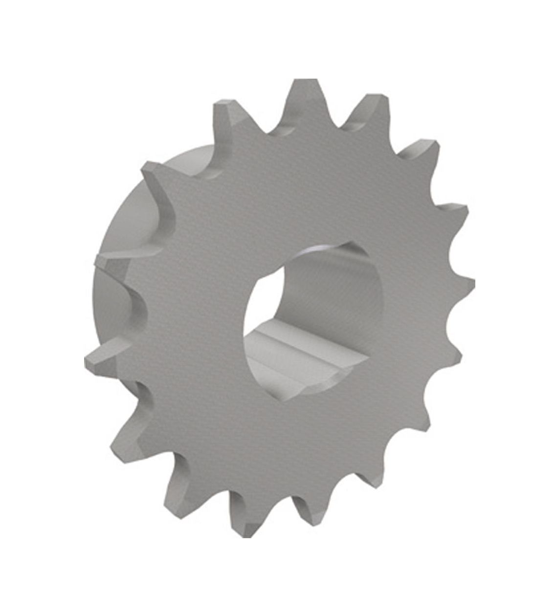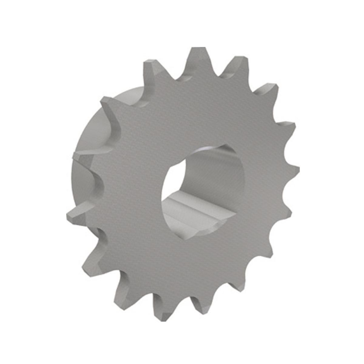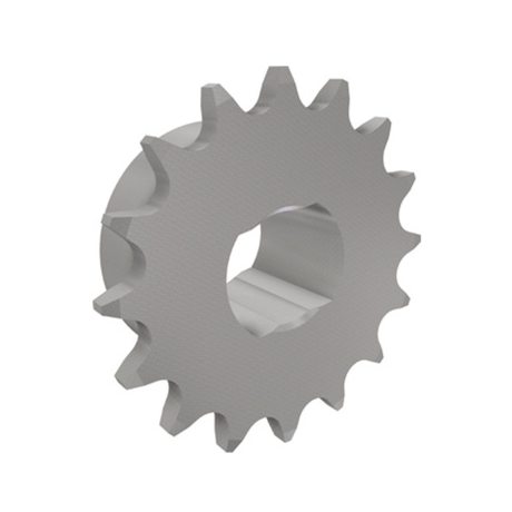 Galvanized sprocket for flexible chain coupling, for connecting drives to tubular shafts. Sprocket for mounting on a 26.5x20 mm shaft with flat sides.