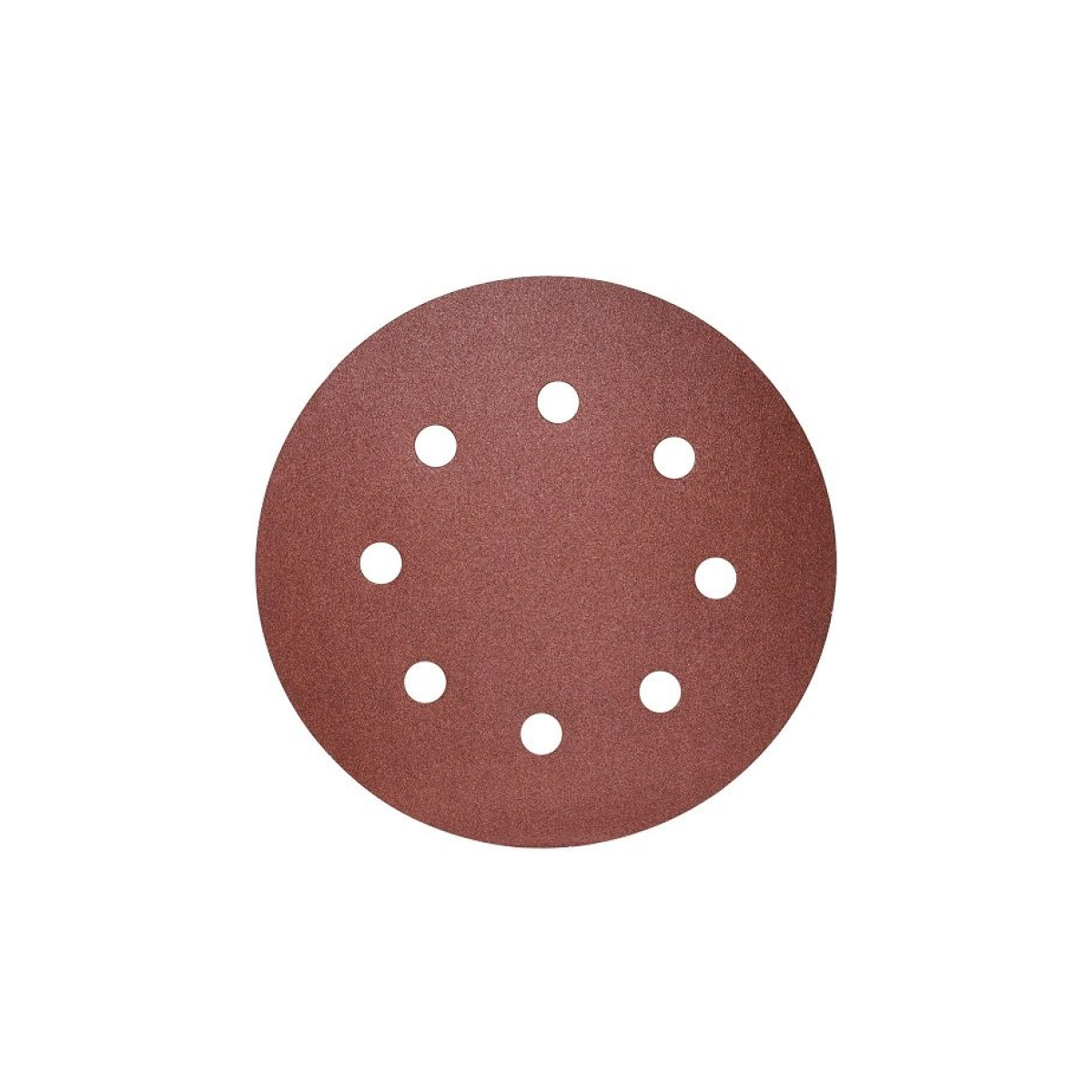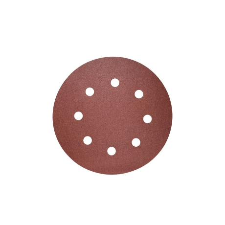 Grinding wheel S&R D190 mm grain 100 self-locking - designed for grinding metal, wood, other surfaces coated with varnish, paint, plaster, etc. Features of sanding paper S&R D190 mm 219100001: Made on a paper basis. Attaches to an eccentric sander using a special Velcro. The grain is made of electrocorundum, bonded with synthetic resin. The grain size is 100, which allows you to use the sanding sheet for smoothing surface irregularities, grinding, removing paint. The presence of 8 holes for removing dust and chips.Benefits and warranty