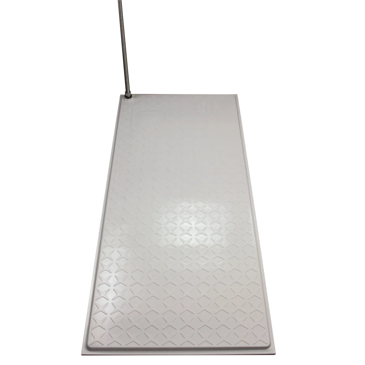 is made of PVC and the heating film specially designed for this purpose guarantees an even heat distribution. The width of the heating plate is always 500 mm and the length is 1500 mm. By redesigning this new heating plate, we were able not only to increase the heating area but also to significantly reduce electricity consumption. The savings are around 30%. The electrical wire is still protected by a flexible stainless steel tube to prevent it from being damaged by animals, the cable remainsBenefits and warranty