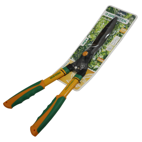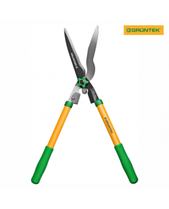 Hedge shears GRUNTEK Adler 530mm - an easy-to-use garden tool designed for trimming ornamental trees, shrubs that form a hedge. The main feature of the model is the presence of long wavy blades and a special screw that adjusts the clamping force of the blades. Thanks to this, the user will be able to quickly and accurately cut off excess branches on bushes or trees. The cutting parts of the GRUNTEK Adler garden shears are made of hardened high-carbon SK5 steel, thanks to which they remain sharp longer. The blades additionally have a NON-Stick coating that prevents the sticking of cut branches and thin bark. The model is equipped with long blades of 203 mm with a total tool length of 560 mm, which makes it possible to perform an even cut of a young green hedge. For ease of use, the garden shears are equipped with steel oval handles with ergonomic pads.Benefits and warranty