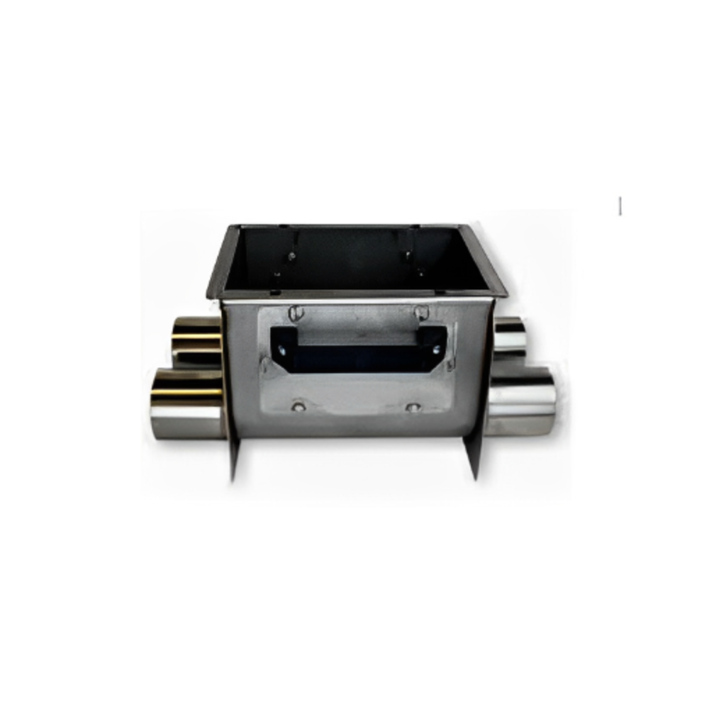 Double open-type receiving hopper for spiral conveyors. Material. Stainless steel. Diameter 75 mm. Design features. Open passage design without built-in bearings. Optimized geometry for uninterrupted material flow. Standardized fasteners for integration into existing systems.Benefits and warranty
