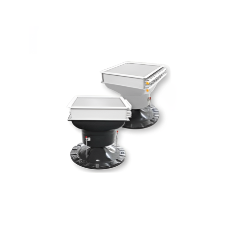 The polyurethane spray plate is height adjustable, allowing you to control the air velocity at the outlet depending on the width of the livestock building. These heat exchangers, specifically designed for use in livestock environments, have low electricity consumption. The heating tubes and casing are made of stainless steel. These exchangers are ideal for poultry houses with floor-raised animals.