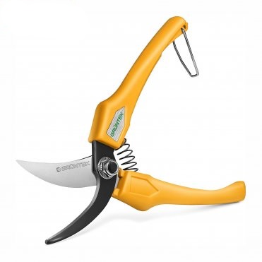 Gruntek Ibis secateurs for pruning green branches, bushes, vines, young shoots and flowers. A compact tool with elegant blades for neat work in the garden. To extend the service life of the tool and for the safety of the user, the secateurs have an iron bracket for fastening the handles. The blades are made of high-quality SK5 steel.Benefits and warranty