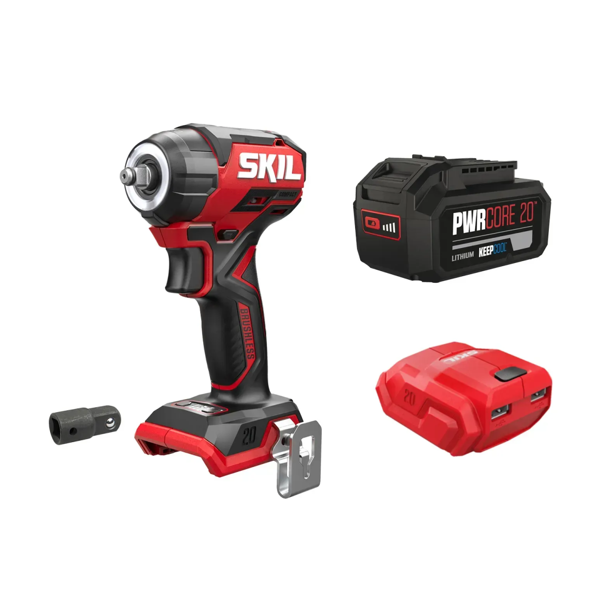 Compact, high-torque brushless cordless impact wrench with three speeds and Reverse control mode The 20V Max 3265 cordless impact wrench is part of SKIL’s compact brushless tool range. These tools are extremely compact and offer a combination of high performance, durability and an unrivalled level of convenience. Like all SKIL 20V Max cordless tools, this model is powered by batteries and chargers built with industry-leading PWRCORE 20 technology.Benefits and warranty