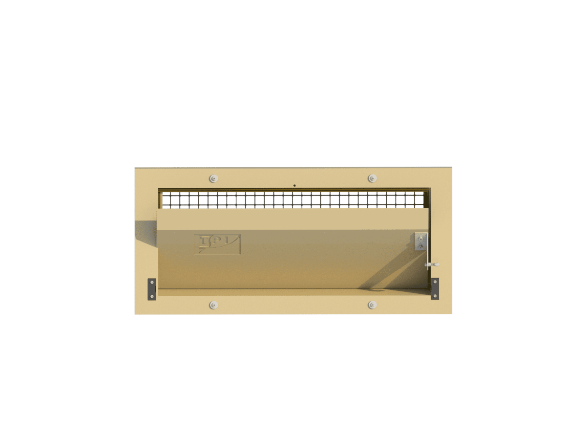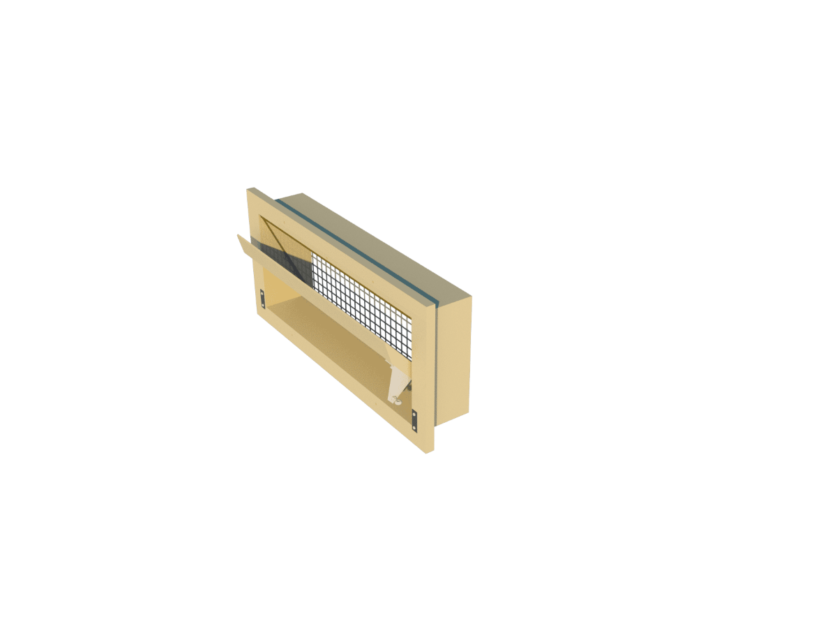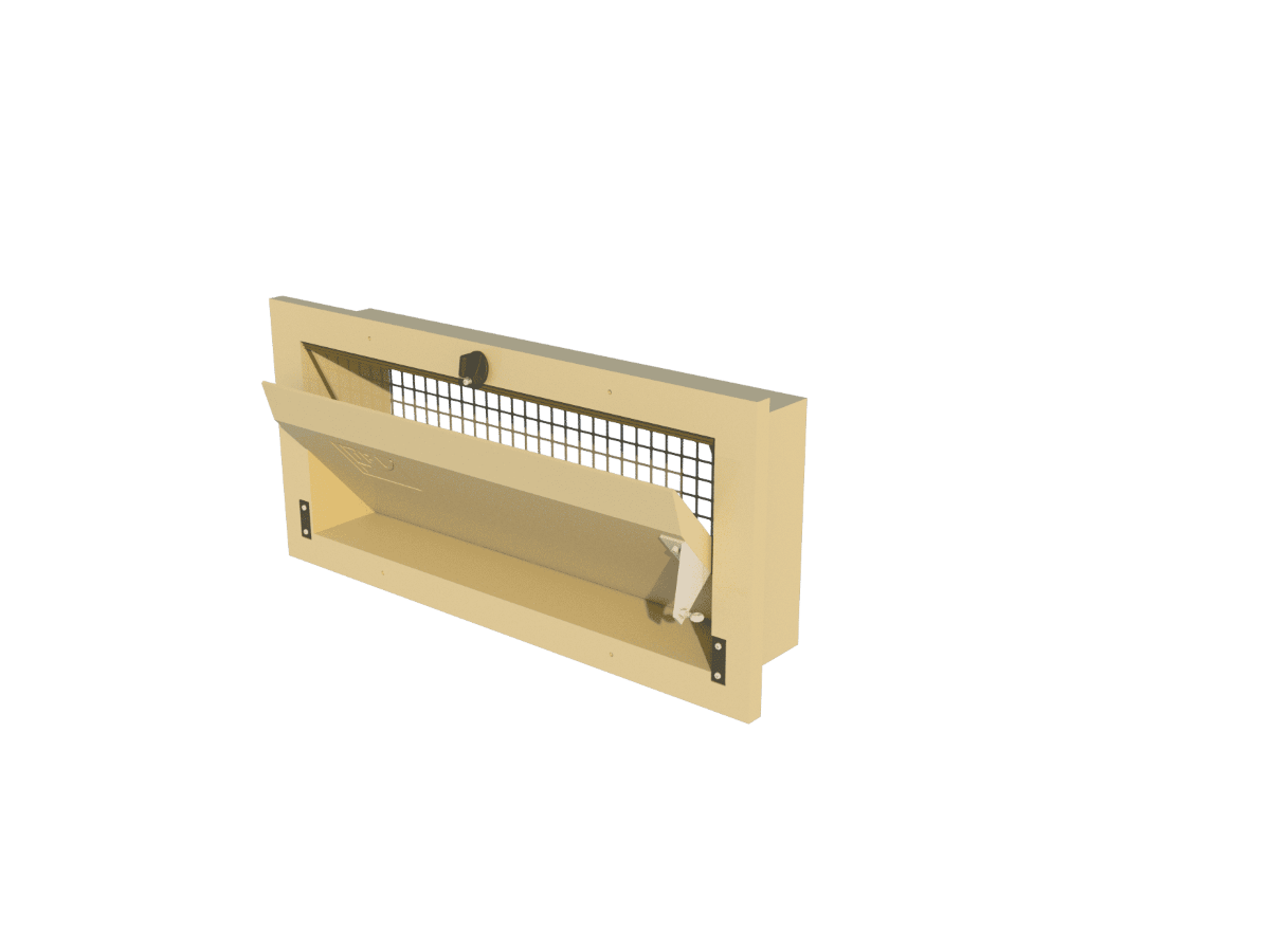 Wall model, flange in front, straight inner flap with turning point at bottom. Controlled by means of a stainless steel side arm. Installation dimensions 670*290mm, effective depth 115mm. Air capacity 1450m³/h at 10Pa.Benefits and warranty