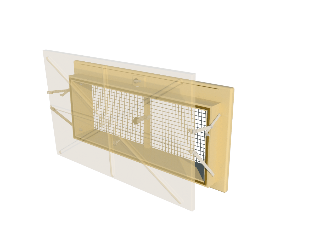 Flange model, indirect guidance of air upward and/or downward. Installation dimensions 1030*430mm, effective depth 50mm. Air capacity 3800m³/h at 10Pa.Benefits and warranty