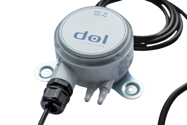 The electronic low pressure sensor DOL 18 can be used to read or control the pressure in the installation area, as well as to generate an alarm signal in either too low or too high a pressure. Є a wide selection of DOL 18 sensors with different ranges ranging from 25 Pa to 1250 Pa and outputs 0-5 V, 0-10 V and 4-20 mA.Benefits and warranty