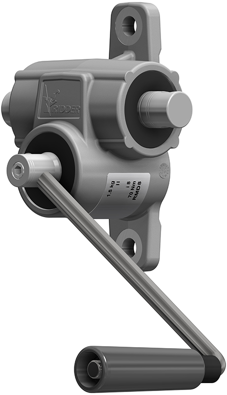 RMD manual drives are drive units for controlling ventilation systems and screen systems (directly or with a cardan shaft). RMD manual drives have a self-braking gear (i=8 or i=16) integrated in an aluminum housing. RMD manual drives are operated by a handle. The drive can be operated from the outside using (electric) tools and a hexagonal socket on the input shaft. The maximum input torque is 20 Nm. Can be mounted on a wall, a structure or to a guide assembly with a guide profile. Connection to the tube (or such) of the controlled system is possible using cardan shafts, sprockets (with chain couplings) or adapters/couplings. Supplied without fastening bolts, nuts, washers, etc.Benefits and warranty
