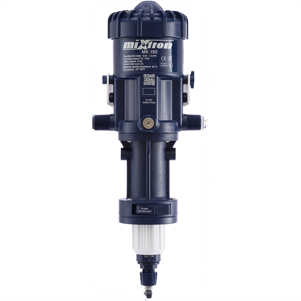 The Mixtron Extreme 0.03 - 0.3 % is a high-precision metering pump that provides efficient and safe dosing of liquids without the need for an electrical supply. Its operation is based on the hydraulic principle, which guarantees stable and precise dosing even with variable water flow.