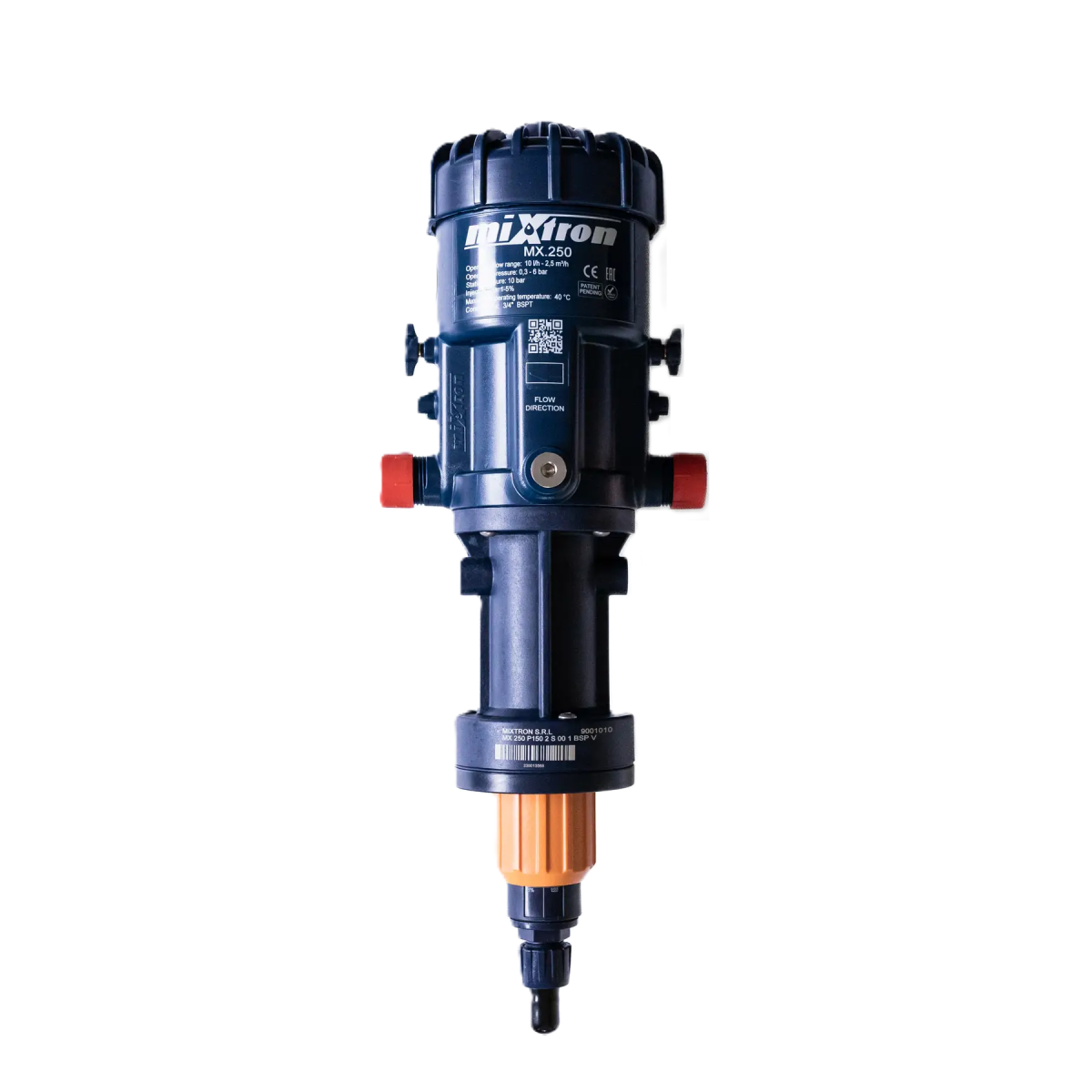 The Mixtron Extreme dosing pump MX.250.P150E is a high-performance and reliable device designed for precise dosing of even aggressive chemicals and concentrated products. With a flow rate of up to 2500 l/h and precise concentration control from 1% to 5%, it is ideal for intensive use in industry, agriculture and water treatment systems. The pump operates without electricity, using only hydraulic pressure in the range of 0.3 to 6 bar, which ensures stable and economical operation even in difficult conditions.