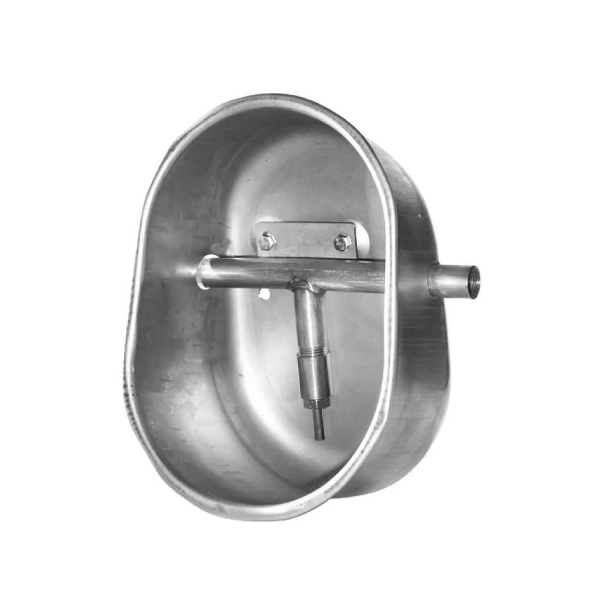 The drinker is suitable for sows kept in groups. Made of stainless steel. Installation: has two ½" inlets for water connection. Advantages of such drinkers: constant supply of fresh water, reduced risk of stagnation.Benefits and warranty