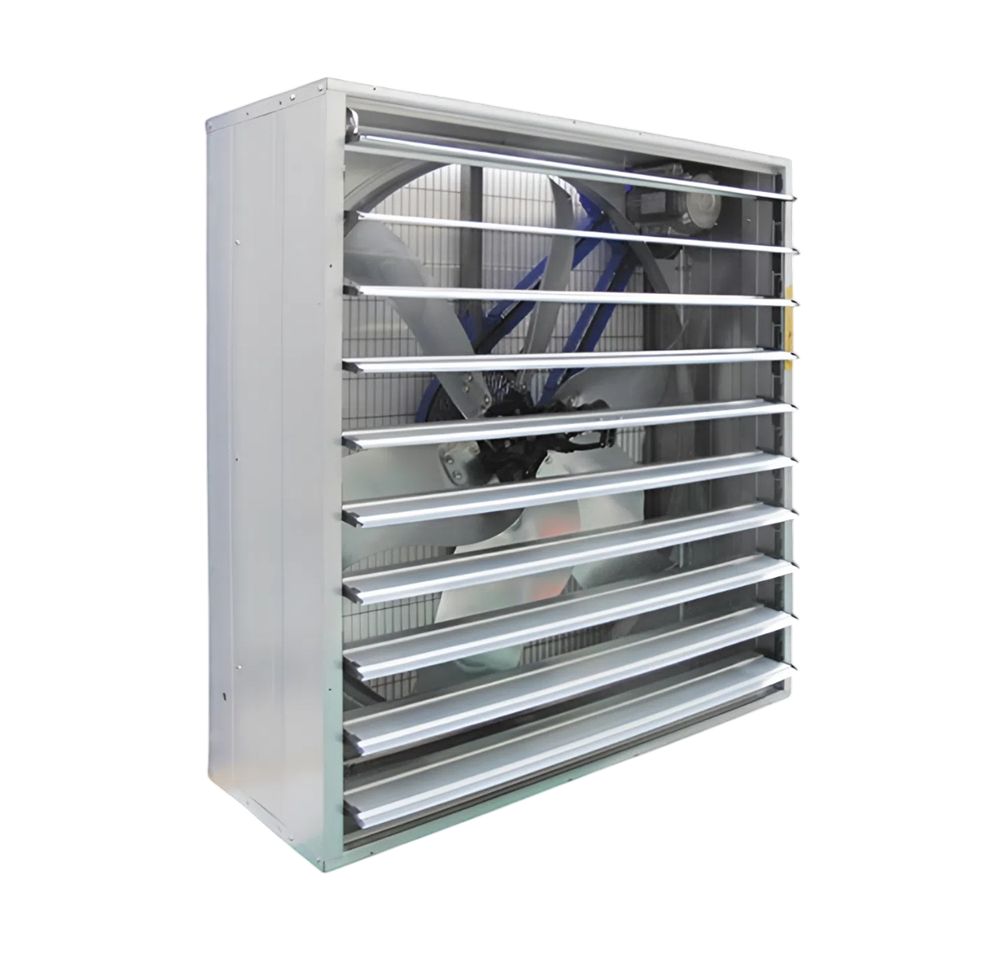 Munters EM energy-efficient exhaust fans help remove stagnant air from livestock buildings (broilers, laying hens, pigs, dairy cattle) and greenhouses. The unique propeller design of these exhaust fans ensures reliable operation wherever very high airflow performance is required, even at high static pressure. The housing, cover, and damper are made of steel with a Munters Protect coating for additional corrosion resistance.Benefits and warranty