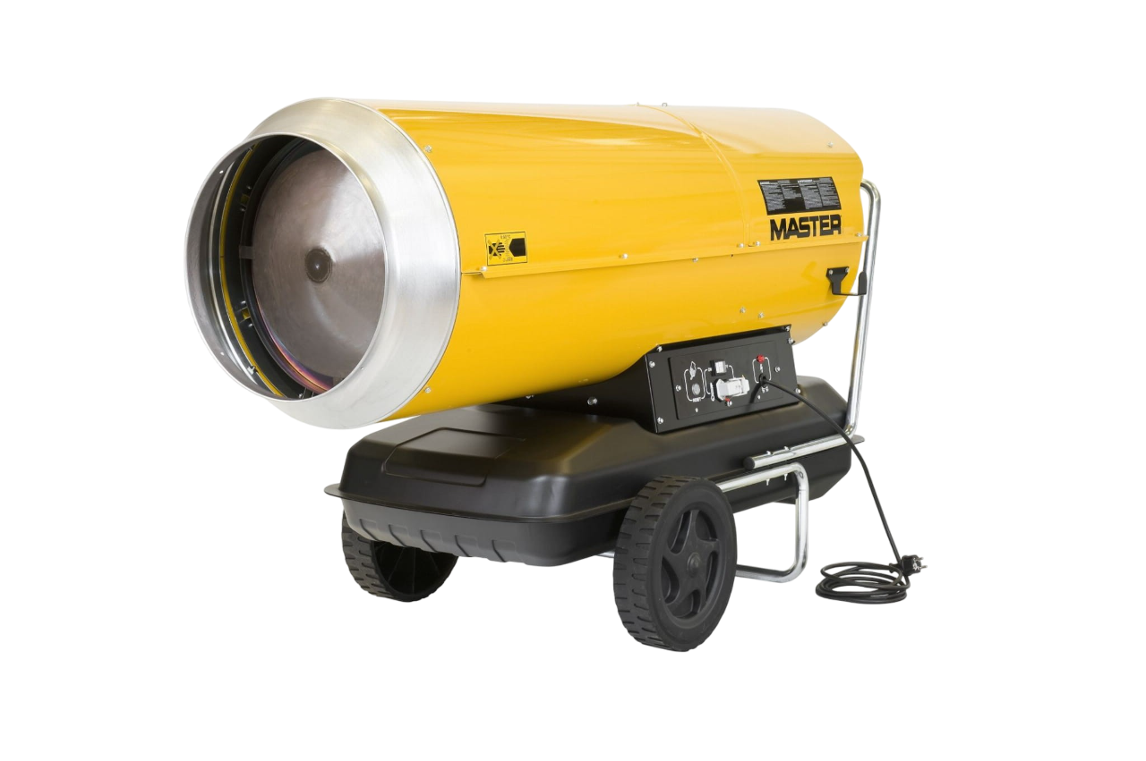 Master B 360 oil heater Simple design and reliability are the hallmarks of Master oil heaters. Oil heaters without exhaust gas discharge are highly efficient devices that provide a constant supply of large amounts of heated air to where it is needed. They are ideal for open or well-ventilated areas such as factories, warehouses or construction sites. Master heaters without exhaust gas discharge are efficient, durable, safe and easy to use. Specification: Power: 111 kW Air flow: 3300 m? / h Fuel consumption: 8.83 kg / h Engine power: 1.06 kW Power supply: 230 V Fuel tank: 105 l Weight: 84 kg Dimensions: 1600x1180x750 mm Warranty: 12/24 months Model description: High air flow Possibility of connecting a room thermostat Two oil filters: oil tank filter and suction filter Engine with thermal protection Electronic flame control with photocell Combustion chamber made of stainless steel Tank with oil level indicator Standard set of wheels Easy transportation Easy operation and maintenance Strong and durable designBenefits and warranty