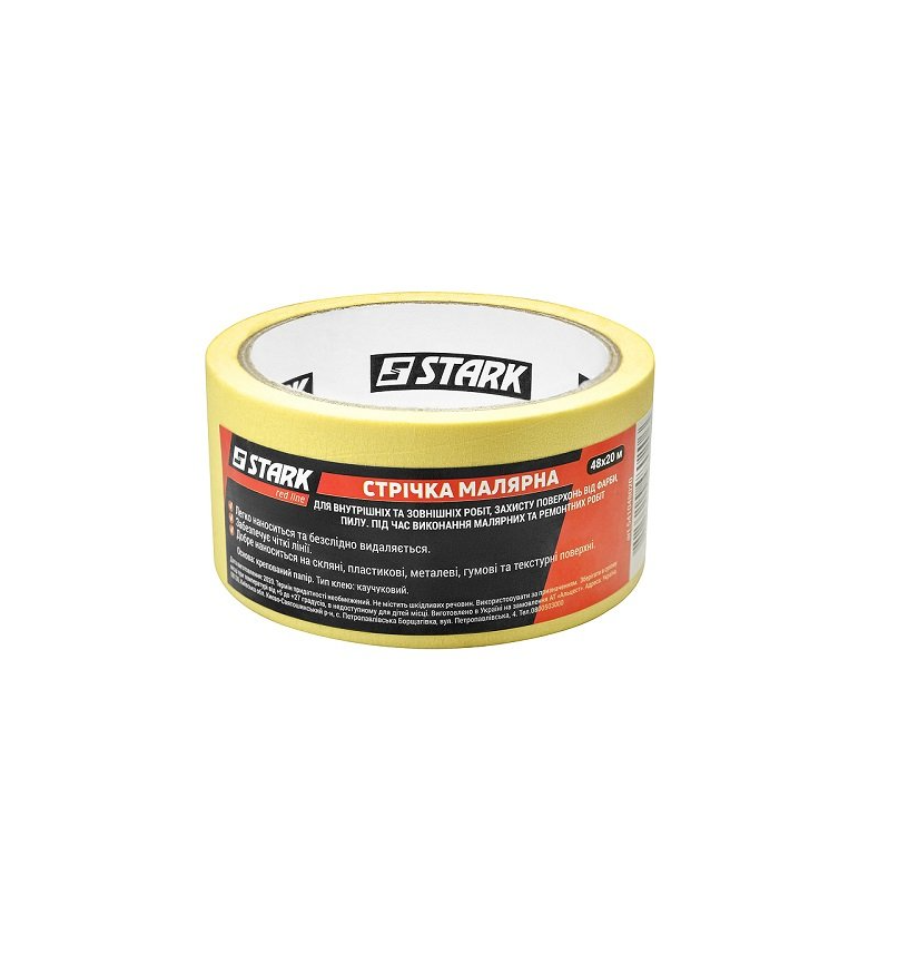 Stark 48x20 m - masking tape for creating smooth and clear edges during painting and other painting and repair work. Stark 48x20 m masking tape is made from 120 μm thick crepe paper. The tape is designed for delicate surfaces - it leaves no adhesive residue on the surface after removal. The tape has a good adhesive base that easily attaches to glass, plastic, metal, rubber, and textured surfaces. Stark 48x20 m is a reliable masking tape that creates clear edges and reliable surface protection during painting and repair work.Benefits and warranty