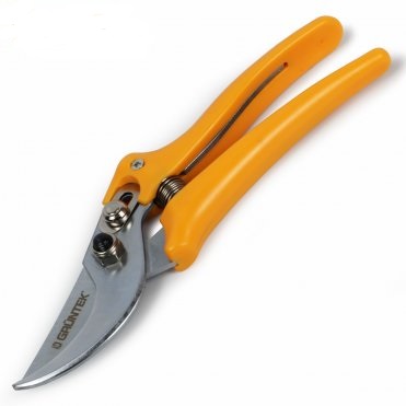 Gruntek Pirol secateurs for pruning green branches, vines, young shoots and flowers. Features of the Gruntek Pirol secateurs: Circumferential type model. The blades are made of hardened high-carbon SK5 steel, thanks to which they retain their sharpness for a long time. The handles are made of durable metal, equipped with a plastic overlay for ease of use. Suitable for cutting live branches with a diameter of up to 19 mm. The length of the tool is 195 mm. The handles have an ergonomic shape. These secateurs are very light: their weight is only 167 grams. Country of brand: Germany. Country of manufacture: China.Benefits and warranty