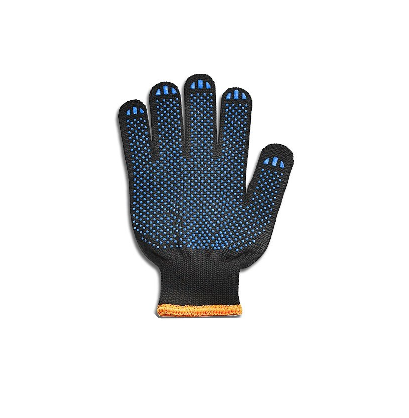 Stark Black 5 thread gloves are gloves with enlarged PVC dots for hand protection during various mechanical work. They are used in construction, repair, and painting. They are made by the method of “plating”, due to which cotton threads go under the inside of the glove, and synthetic threads on top. Thanks to this type of knitting, gloves are more comfortable to work with and have greater wear resistance. They consist of 60% cotton and 40% polyester. The cuff of the glove has an elastic band that is conveniently fixed on the hand. A large PVC pattern is applied to the work surface to prevent slipping. Density of 220 tex will provide gloves with a long service life, as well as make it possible to work in the cold season. Knitting class 7 means that the gloves are elastic and will fit well on the hand.Benefits and warranty