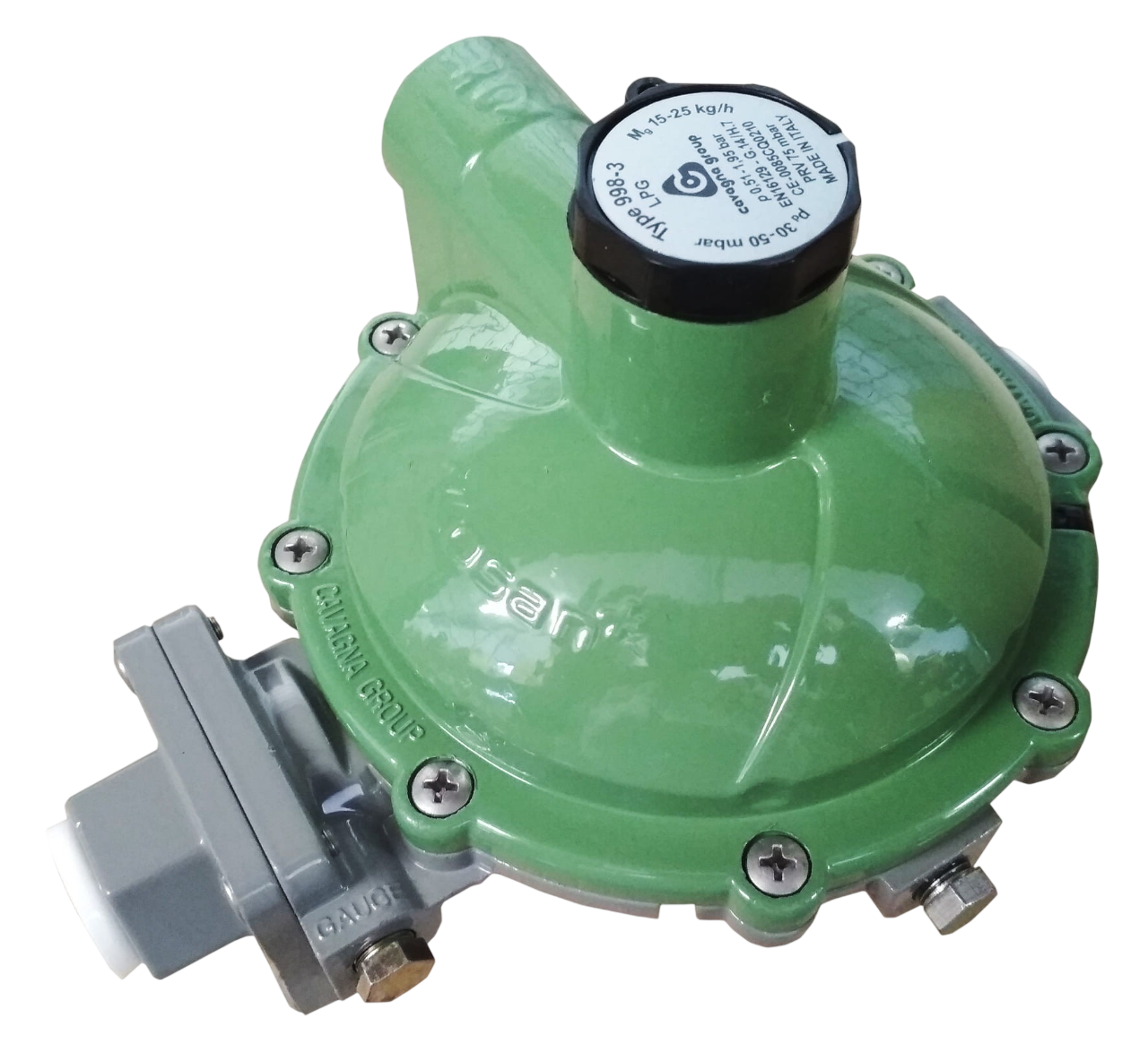 Large reducer for propane-butane heaters Second stage regulator - reduces gas pressure from medium to low. Type: Cavagna 998-3 Productivity: 15-25 kg / h Pressure: Inlet: 0.51-1.95 bar Outlet: 30-50 mbar Topic: Inlet: G 1/2 '' Outlet: G 3/4 '' Suitable for gas heaters. including: - Ermaf GP95, GP120 - Dutch heater: IFH75, IFH100, IFH LTU, HHB70, HHB100 - and others.Benefits and warranty