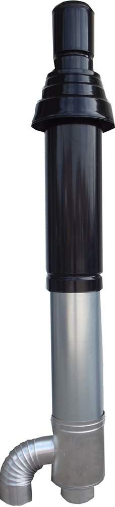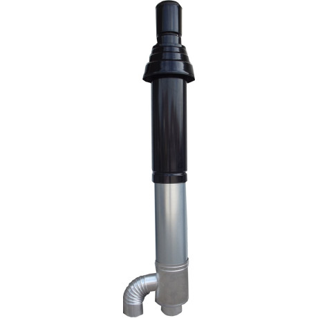 The terminal is installed on the building roof and connected to the heater via a concentric flue system. The set does not include pipes and elbows required for connection to the heater. The maximum extension length is 9 m, but each elbow reduces the length: 45° – by 1 m, 90° – by 1.5 m.