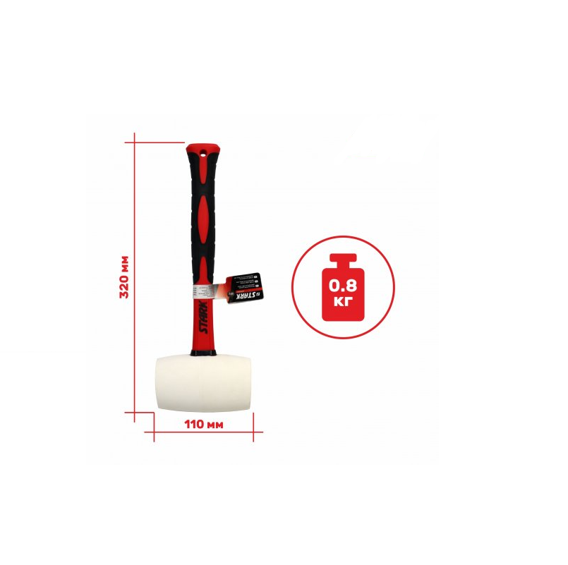Features Rubber hammer, 680g, d 65mm, white, fiberglass handle STARK (520400680)