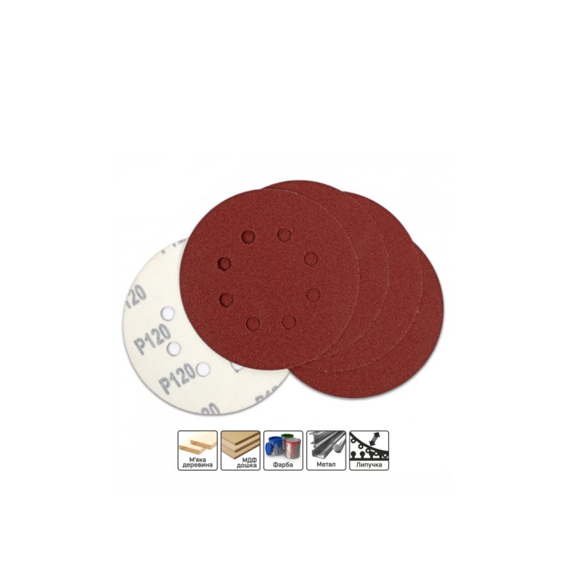 Questions Sanding paper D125 mm with. 120 5 pcs. metal/wood, 8 holes (pack of 5) STARK (126005120)