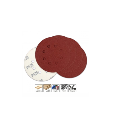 Specification Sanding paper D125 mm with. 120 5 pcs. metal/wood, 8 holes (pack of 5) STARK (126005120)