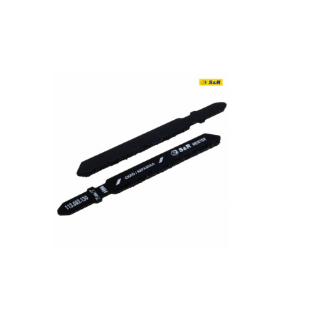 S&R T130RIFF Meister jigsaw blade for glass and ceramics 2 pcs. - designed for straight cutting of ceramic tiles, glass blanks, fiberglass products. Features of the S&R T130RIFF Meister jigsaw blade for glass and ceramics: The blade is made of durable HM high-speed steel. Total blade length - 75 mm. Working length - 50 mm. Thickness - 1.1 mm. Shank - standard, EU, T-shaped. Supplied in blister packaging. In the package - 2 saw blades. Weight - 18 grams. Country of manufacture: China. Country of brand: Germany.Benefits and warranty