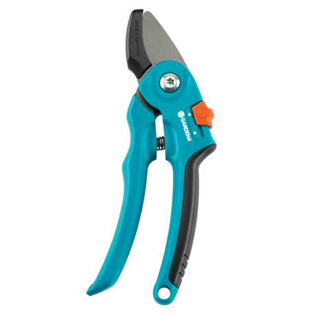 Gardena 8855 is a pruning shear with an anvil for cutting dry branches up to 18 mm in diameter. Designed for pruning bushes, vines, small trees and other vegetation in the garden. The blades are made of stainless steel for fast cuts. The upper blade is Teflon-coated to prevent tree sap and dust from sticking to branches. The lower blade is an anvil for high-quality cutting of hard, old, dry branches. The soft-grip handles fit comfortably in the hand and provide long-lasting work. A reliable spring increases the pressure force on the blades for fast work. There is a ring at the end of the handle for hanging the secateurs on a hook or nail. Also, for safe storage, there is a lock that easily locks the blades in one motion. The Gardena Anvil Secateurs are a compact tool that can easily clear your garden of dead branches.Benefits and warranty