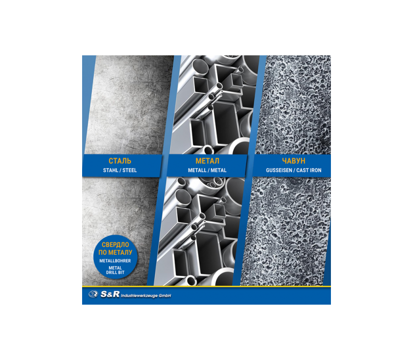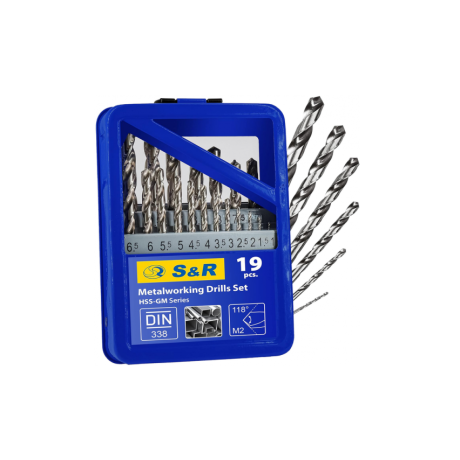 A set of medium-length S & R GM drills according to the Din 338 standard for drilling through and blind holes in cast iron, non-ferrous metals, plastics, structural and tool steels with a hardness of up to 250 Bhn. The drills are manufactured using high-precision grinding of the working profile and a special heat treatment method to ensure maximum strength and rigidity. The drills are made of high-speed steel with a conical surface sharpening. Accuracy class h 8. S & R GM metal drills are suitable for hand drills and other drilling equipment.Benefits and warranty