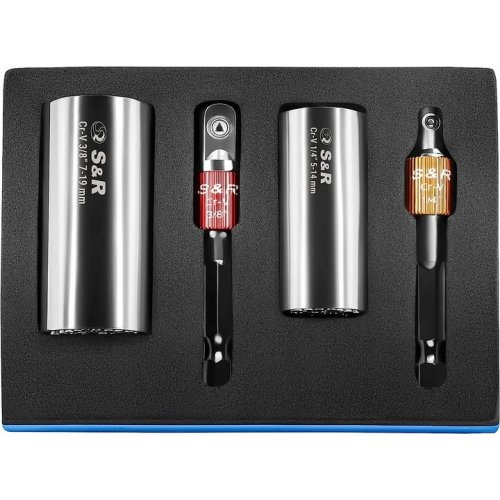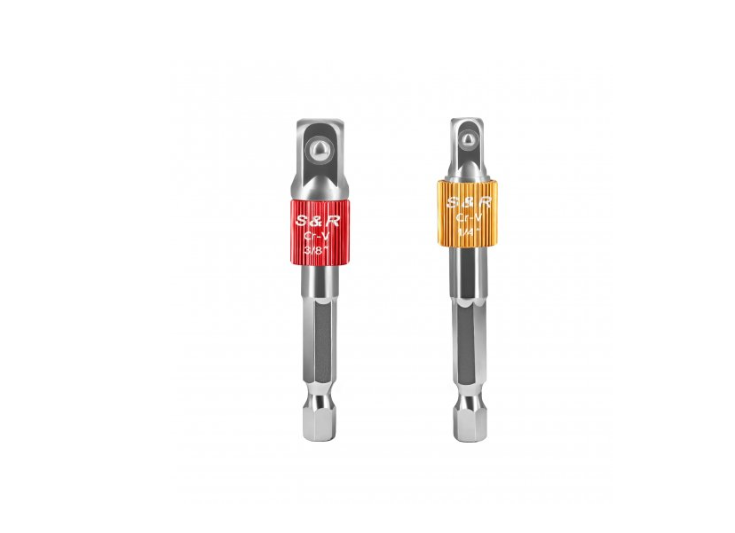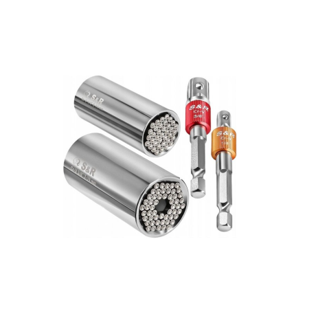 A set of 2 S&R universal heads and 2 hexagonal adapters ¼” and 3/8” - allows you to easily tighten fasteners with different head shapes: hook-shaped, square, arched and others. Features of the S&R universal head set: The set includes 2 universal heads with a working diameter of 5-14 mm and 7-19 mm. The universal heads have strong metal pins inside the working area that hide inside when pressed. Thanks to such pins, the universal socket head can work with fasteners of almost any shape (only those pins that the fastener presses on will hide inside the head, the rest will hold the fastener head and transmit the force of the wrench). The set also includes 2 adapters - from the 1/4" and 3/8" square to the hexagon. The tools from the set are made of durable chrome-vanadium steel. Brand country: Germany.Benefits and warranty