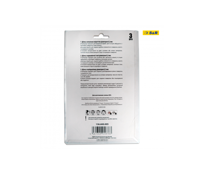 Set of double-sided brushes S&R Meister 3 pcs. - the set includes 3 narrow wire brushes, in which the bristles are placed on 2 sides for ease of work with small surfaces, hard-to-reach areas. Features of the set of double-sided hand brushes SR Meister 3 pcs: In the set: a brush with stainless steel bristles, a brush with brass bristles and a brush with nylon bristles. The brush with steel bristles is designed to remove rust, remove paint coatings. The brass brush is suitable for working with non-ferrous metals, namely, their rough cleaning, removing solder, as well as for working with ferrous metals - for removing paint, removing rust. The nylon brush, due to the flexibility and strength of the bristles, is optimally suited for cleaning hard-to-reach areas. The total length of each brush is 17.5 cm. The bristles are placed in 3 rows. The length of the working part (large brush) is 5 cm, the height of the bristles is 1.7 cm. The length of the handle is 13 cm. The brush handles have a comfortable rubber pad for easy use. Country of brand: Germany. Country of manufacture: China.Benefits and warranty