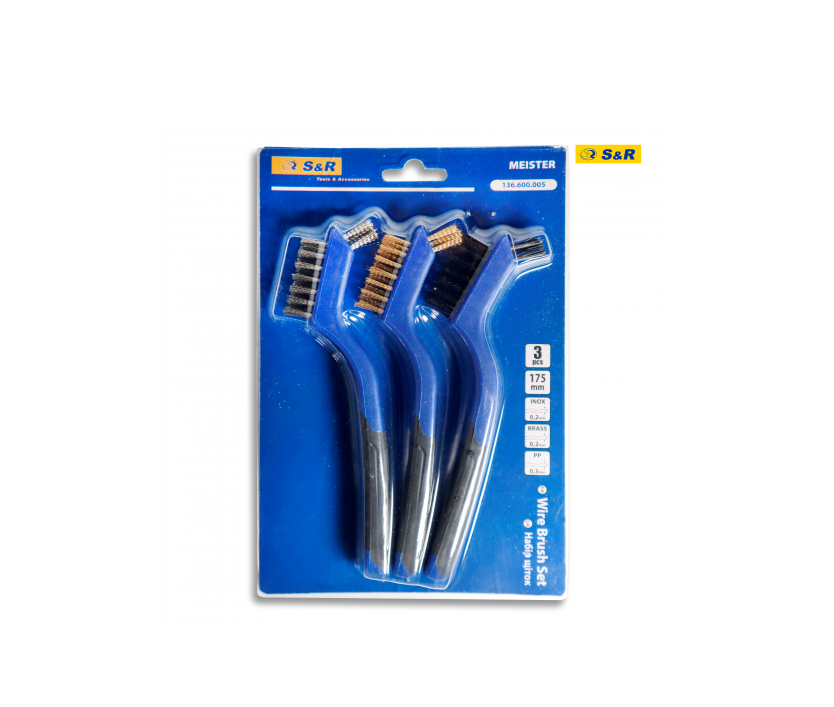 Questions Set of hand brushes Meister 3 pcs.: 175 mm, brass, ner. steel, polypropylene S&R (136600005)