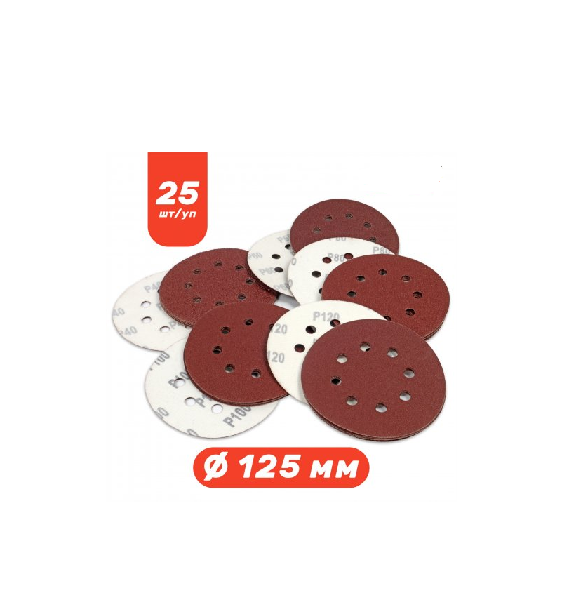 Reviews Set of sanding paper 125 mm, 25 pcs. grain: 40,60,80,100,120, 8 holes STARK (126025010)