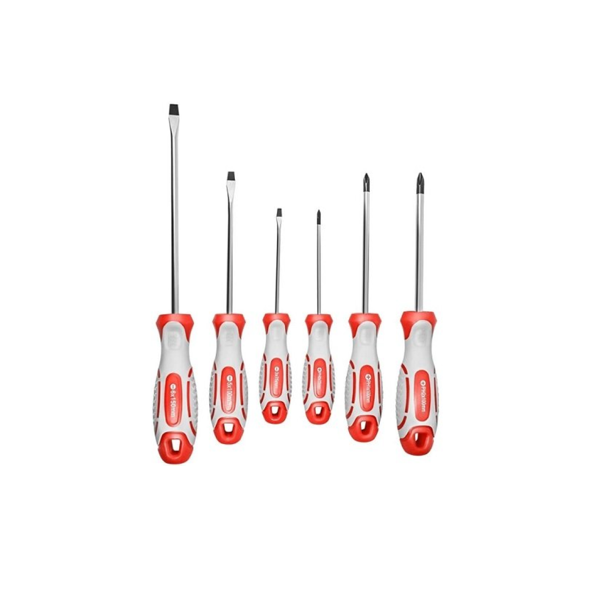 Stark 5 pcs. - a set of screwdrivers for unscrewing/screwing various types of screws. The set includes: SL 3x75 straight blade screwdriver: blade length - 75 mm; blade width - 3 mm. SL 6x150 straight blade screwdriver: blade length - 150 mm; blade width - 6 mm. SL 5x100 straight blade screwdriver: blade length - 100 mm; blade width - 5 mm. PH 0x75 Phillips screwdriver: blade length - 75 mm. Suitable for fasteners with a diameter of less than 2 mm. PH 1x100 Phillips screwdriver: blade length - 100 mm. Suitable for fasteners with a diameter of 2-3 mm. PH 2x100 Phillips screwdriver: blade length - 100 mm. Suitable for fasteners with a diameter of 3-5 mm. All screwdrivers are made of chrome-vanadium steel with a hardness of 51-54 HRC, which ensures resistance to loads, and thanks to the magnetized blades, the screwdrivers connect securely to screw connectors. The two-component rubberized handle allows you to work comfortably for a long time.Benefits and warranty