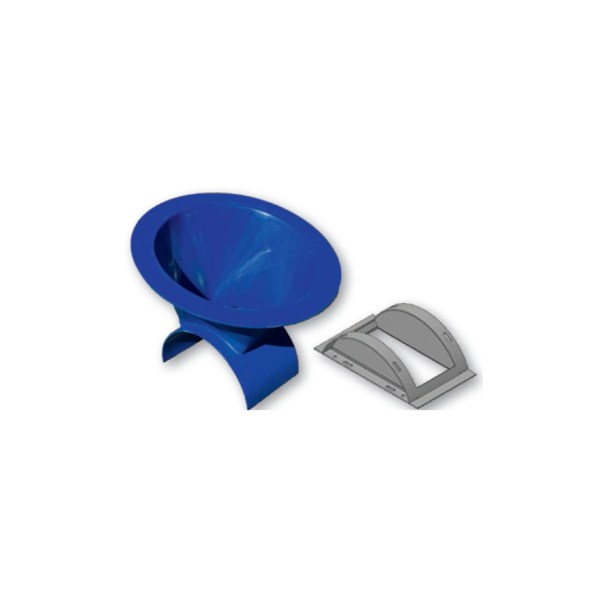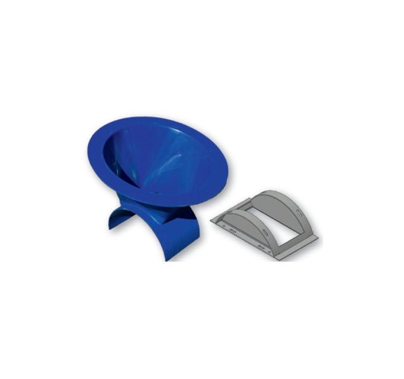 Power adapter, infinitely adjustable (0°–45°), with guide and slide for feed control. Made of GFK and stainless steel, inner diameter 440 mm, outer diameter 560 mm. Color — blue. Provides flexible connection of the silo to the feed supply system with the possibility of flow shut-off.Benefits and warranty