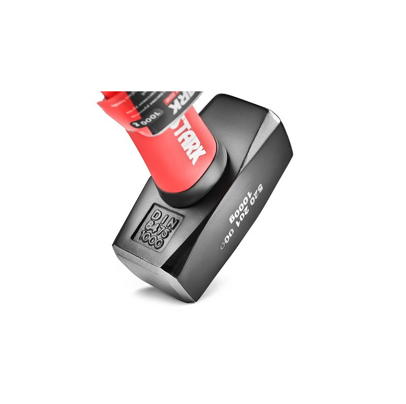 The Stark 1 kg sledgehammer is a hand-held striking tool for delivering powerful blows during installation and dismantling, when working with sheet metal, and for other heavy-duty tasks. The heavy head is made of forged steel, giving the working part high strength for delivering powerful blows. The sledgehammer handle is made of fiberglass for strength, and rubberized inserts prevent slipping and ensure comfortable operation. Thanks to the properties of fiberglass, the handle is resistant to damage from chemicals such as oil, gasoline, solvents, etc.Benefits and warranty