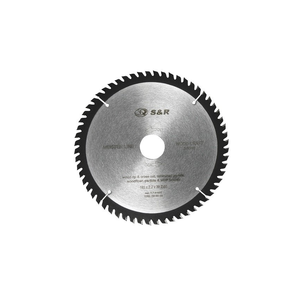 Features Spray disc 185x30x2.2mm ATV 60 teeth. WoodCraft Meister + Rings 16/20 S&R (238060185)