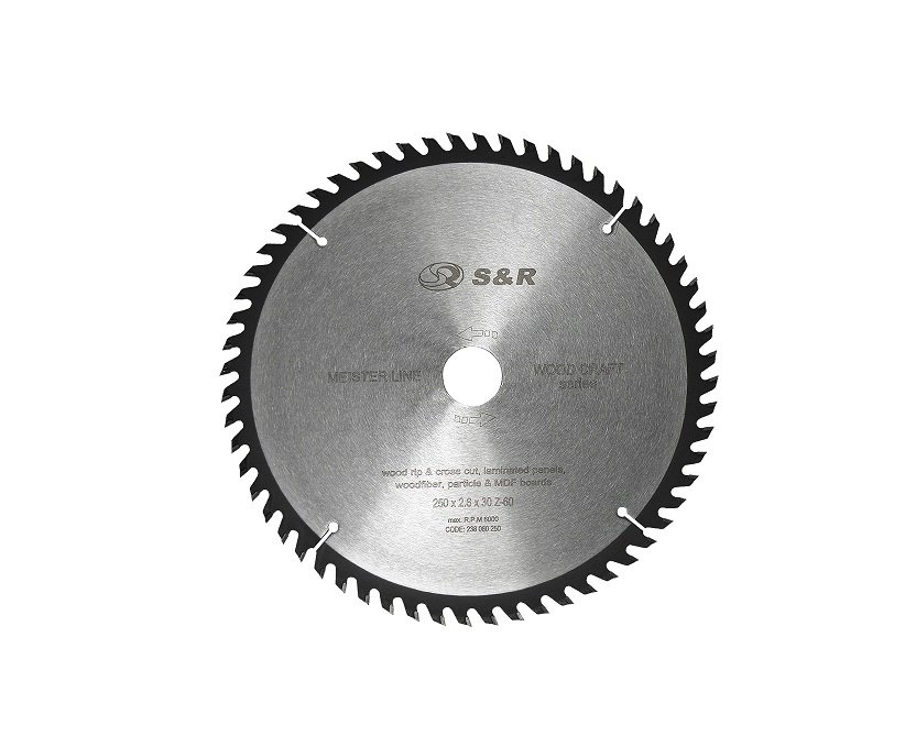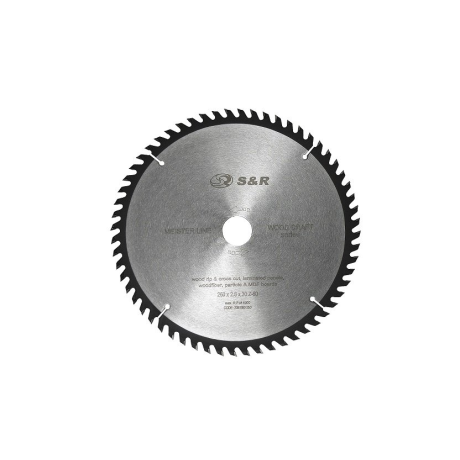 S & R Wood Craft 250x30x2.6 mm - for saws, the Meister series discs are designed for cutting both hard and soft wood, MDF panels, chipboard, fiberboard and other wooden products. S & R Wood Craft 250x30x2.6 mm has 60 sharply sharpened ATV-shaped teeth. Reliable steel with a thickness of 2.6 mm ensures high-quality operation of the disc for longitudinal and transverse sawing of wooden blanks. The 30 mm disc landing is suitable for use with miter and circular saws, as well as stationary machines. The Meister Wood Craft series discs are the ideal solution for clean and precise cutting of wooden and other wood-containing materials.Benefits and warranty