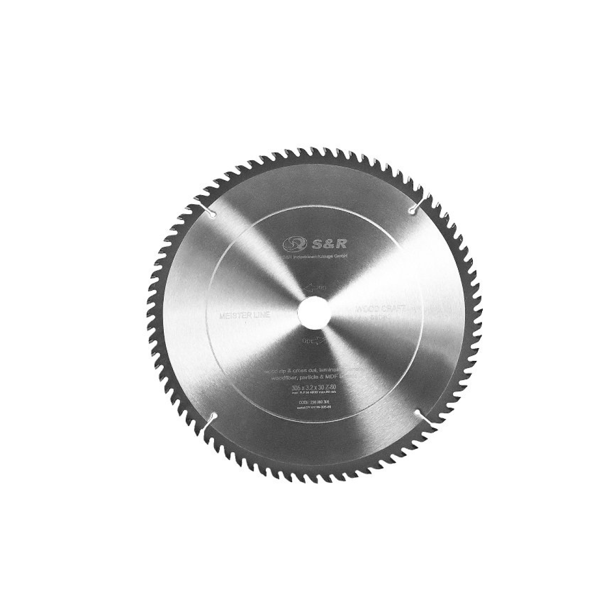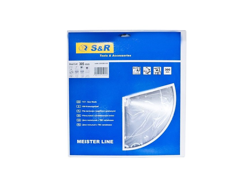 Saw blade S&R WoodCraft Meister 305x30x2.4mm ATV 80 teeth + adapter rings 20 / 25.4 - designed for cutting hard and soft wood, chipboard, fiberboard, MDF, etc. This tool works together with circular saws, miter saws, circular saws, etc. Suitable for performing cross and longitudinal cuts. The model has an ATV tooth shape (with a variable bevel of 15 degrees to one side or the other), which provides a clean, even cut without chips. There are 80 teeth on the blade in total. The blade diameter is 305 mm, the hole size is 30 mm. The delivery set also includes 2 adapter rings, with a diameter of 20 mm and 25.4 mm, which allow the blade to be used with various power tools. The metal thickness is 2.4 mm, which allows you to work with the saw blade for a long time without deformation and wear.Benefits and warranty