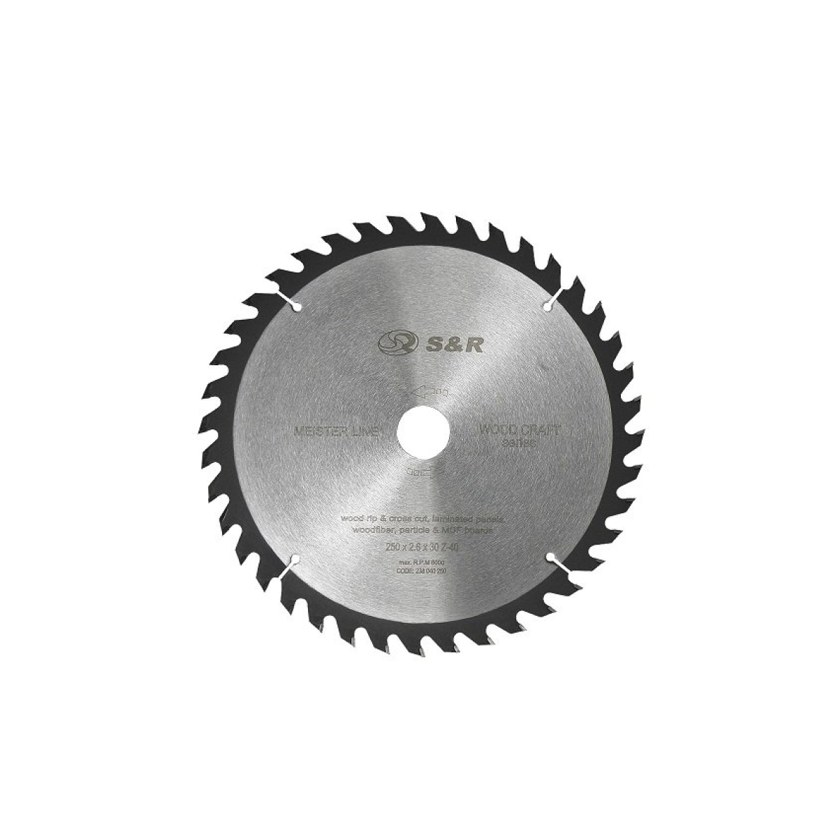 S & R Wood Craft 250x30x2.6 mm - for saws, the Meister series discs are designed for cutting both hard and soft wood, MDF panels, chipboard, fiberboard and other wooden products. S & R Wood Craft 250x30x2.6 mm has 40 sharply sharpened ATV-shaped teeth. Reliable steel with a thickness of 2.6 mm ensures high-quality operation of the disc for longitudinal and transverse sawing of wooden blanks. The 30 mm disc landing is suitable for use with miter and circular saws, as well as stationary machines. The Meister Wood Craft series discs are the ideal solution for clean and precise cutting of wooden and other wood-containing materials.Benefits and warranty