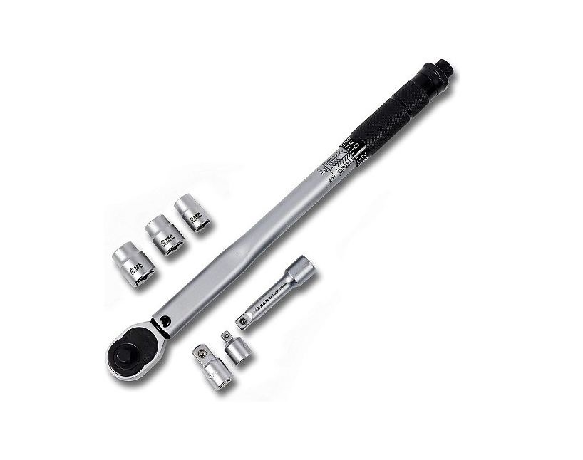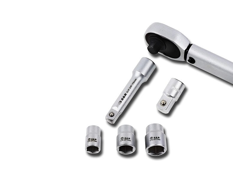 S & R 3/8 "19-110 Nm - torque wrench in a set with three sockets, extension and adapter. A wrench with a reversible ratchet mechanism for tightening and loosening fasteners. The tightening force is adjustable from 19-110 Nm by turning the handle. For precise setting of the force, a scale is provided on the handle, thanks to which the exact force selected by the user is applied. Precise tightening +/- 4%. The wrench is certified and calibrated according to DIN 6789 ISO. The wrench is equipped with a 3/8 "square drive that works with similar sockets. The wrench, as well as the sockets, are made of chrome-vanadium steel, which makes the set have a long service life even under heavy loads. The set includes 3 sockets with a 3/8 "seat hole with a diameter of 13 mm, 15 mm, 17 mm. For comfortable work in hard-to-reach places, the set includes an extension cord and a 3/8 "adapter. Everything comes in a compact plastic case for reliable movement and storage of the tool. The S & R 3/8 "19-110 Nm set is suitable for machine repair, assembly and disassembly work, for equipment repair, garden equipment and other needs.Benefits and warranty