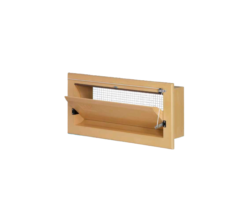 Wall model, flange in front, straight inner flap. Extended execution. Controlled by means of a stainless steel side arm. Installation dimensions 670*290mm, effective depth 150mm. Air capacity 1450m³/h at 10Pa.Benefits and warranty