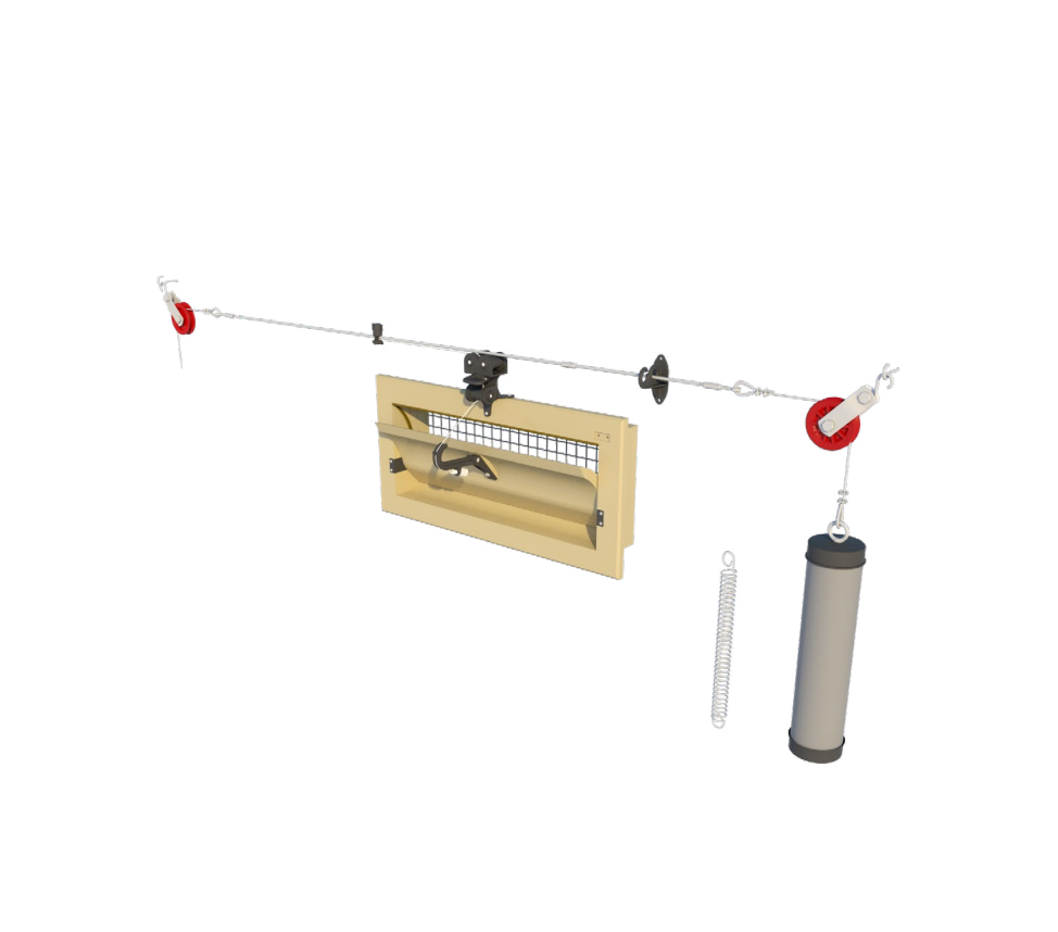 This inlet is suitable for almost all applications. With a middle hinged inner valve the air will be divided and also flows underneath the valve when it is opened over 35%. The inlet is controlled by means of a central plastic control arm. This inlet is executed with a curved inner valve so when it is opened for maximum ventilation air is also guide downwards to the animals.Benefits and warranty