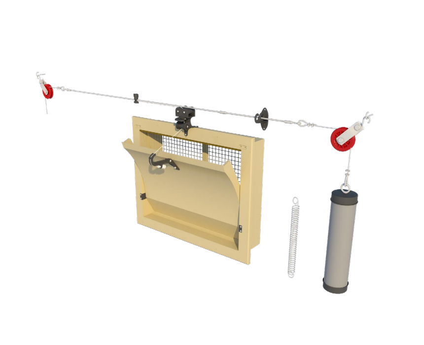 This inlet is suitable for almost all applications. With a middle hinged inner valve the air will be divided and also flows underneath the valve when it is opened over 25%. The inlet is controlled by means of a central plastic control arm. This inlet is executed with a curved inner valve so when it is opened for maximum ventilation air is also guide downwards to the animals. The square shape and slightly curved inner valve of this inlet make it especially suitable for wider houses where a farther throw of air is desirable.Benefits and warranty