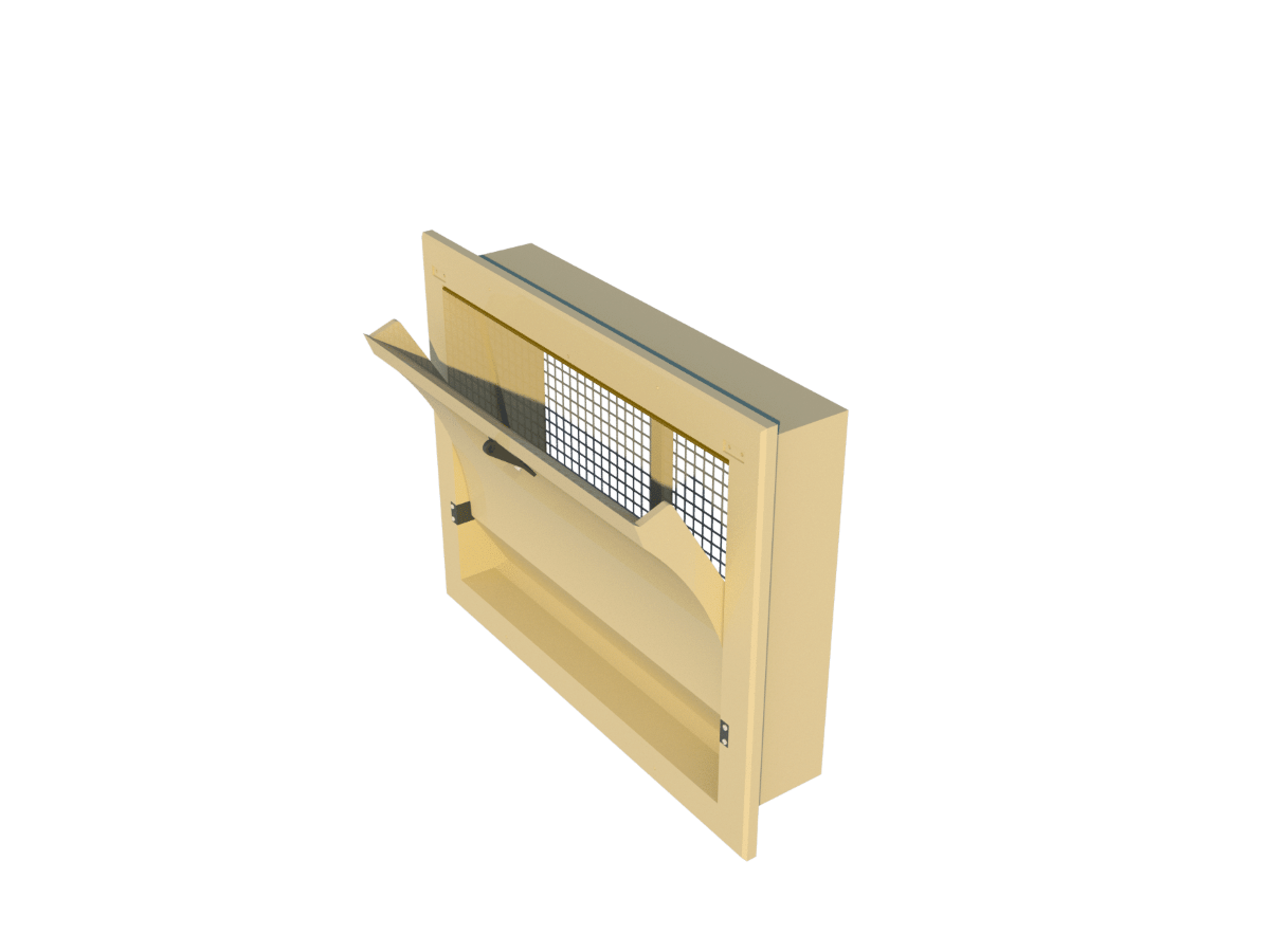 Wall model, flange in front, curved inner flap. Controlled by means of a central plastic arm. Installation dimensions 735*585mm, effective depth 165mm. Air capacity 3900m³/h at 10Pa.Benefits and warranty